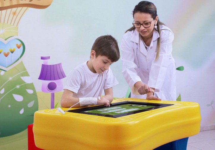 Neste contexto, jogos eletrônicos educativos fazem diferença, tanto nas salas de espera, como nas consultas. Além do conteúdo diferenciado, pensado para apoiar o desenvolvimento das crianças, existem conteúdos para necessidades especiais, como por exemplo, o desenvolvimento da articulação da fala. Conteúdo, aliado à uma tela resistente, estrutura ergonômica, resistência a líquidos ou batidas e a possibilidade de compartilhamento tem a tornado a PlayTable uma solução muito atrativa para estes espaços.