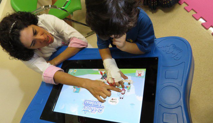 Enquanto estão em tratamento, as crianças podem brincar na mesa digital e desenvolver diversas habilidades cognitivas e motoras enquanto brincam. Isso porque a mesa tem jogos educativos que abordam conteúdos de Português, Matemática, Biologia e outras disciplinas, que apoiam na continuidade dos estudos enquanto os pequenos estão em tratamento.