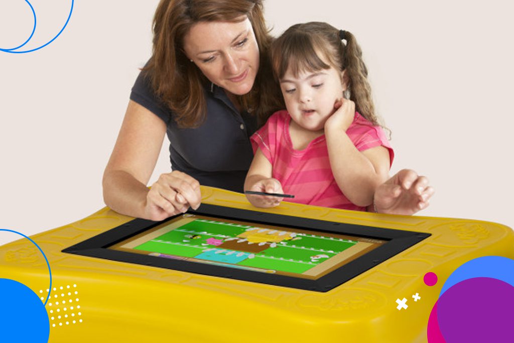 A professora Cirlene conta que usa a PlayTable, um recurso bem completo para atender crianças com diferentes necessidades. Ela descreve que uma criança com paralisia cerebral que não consegue fazer o movimento de pinça com as mãos não conseguirá usar um mouse ou teclado, mas consegue fazer os movimentos necessários para usar uma mesa digital.
